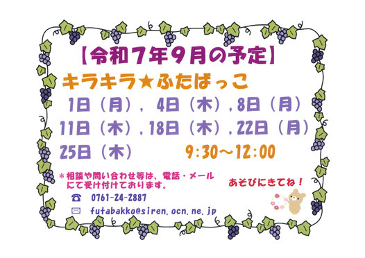 2022年8月 『キラキラふたばっこ』を再開いたしました。感染対策をしながらお待ちし