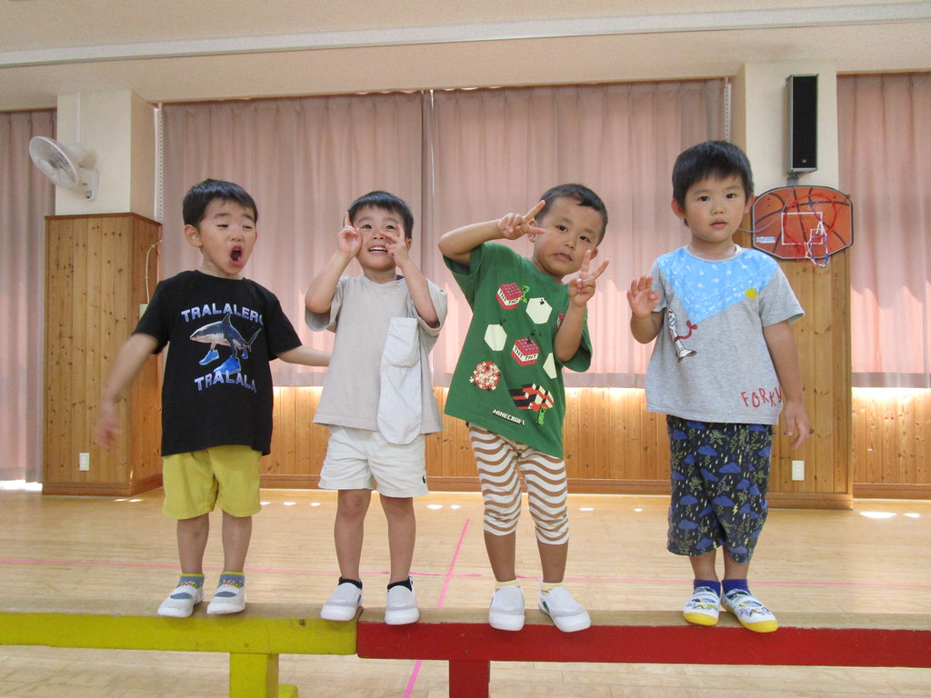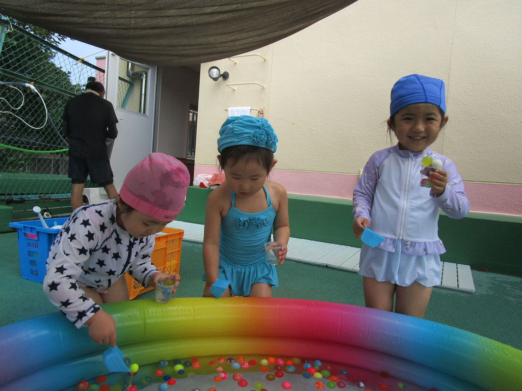 毎日暑い日が続いていますが、さくら組のお友達は元気いっぱい!大好きな水遊びをしたりホールで体を動かしたりして楽しんでいます♪