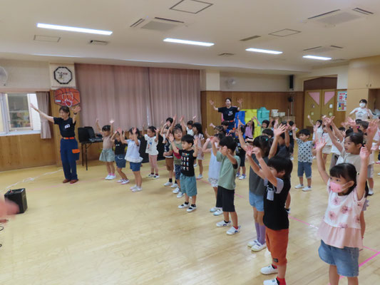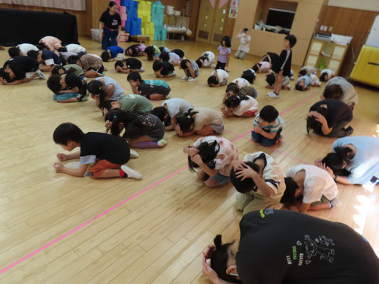 子どもたちにもとっても分かりやすく防災のことを紙芝居や映像も使いながら教えてもらい、防災ダンスを一緒に踊って盛り上がりました(*^▽^*)