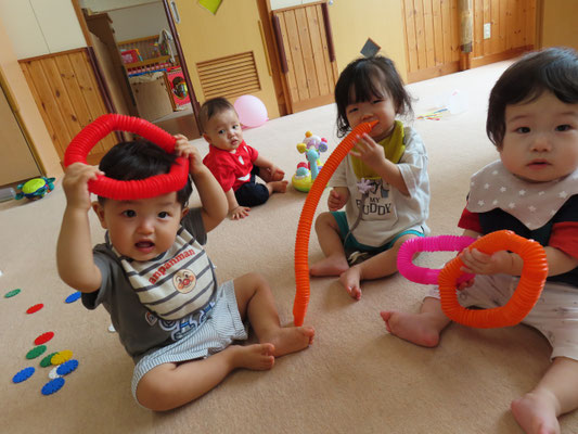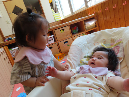 新しいお友達がたくさん増え、12名となり、とってもにぎやかになったひよこ組です!お部屋の中をたくさん歩いたり、ハイハイしたり、少しずつお友達のことも気になってきました(*^_^*)たくさん遊んで毎日元気に楽しく過ごしています🎶